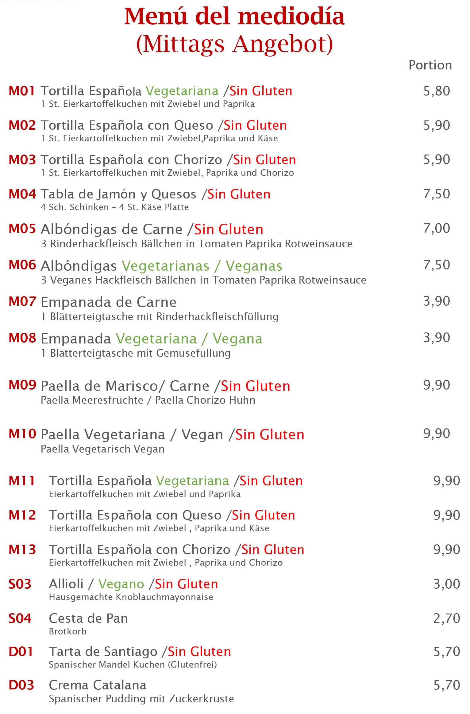 Mittagskarte